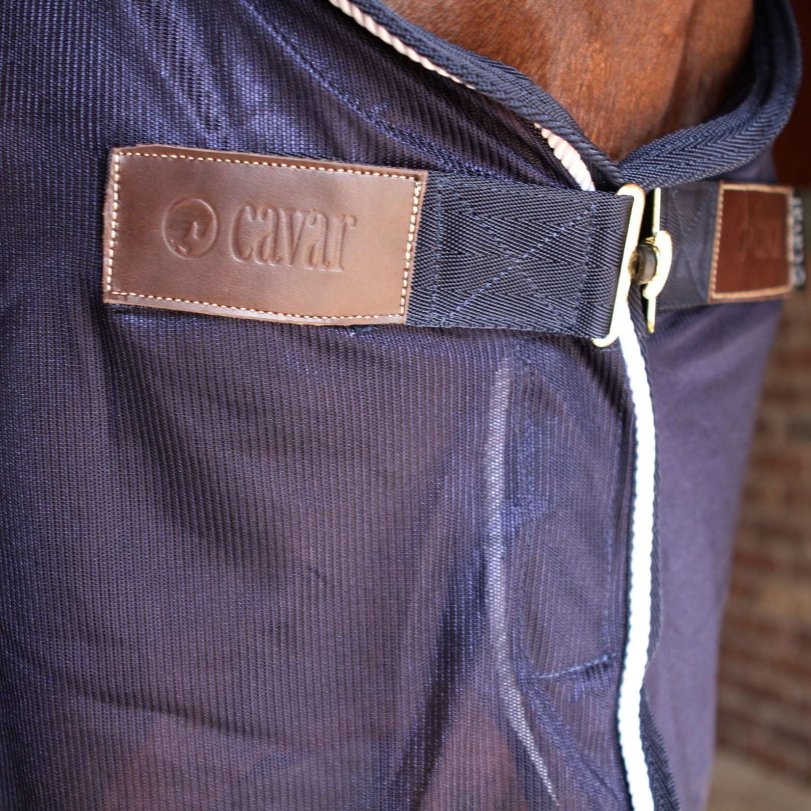 De Cavar Vliegendekens zijn heel speciaal door de aan twee kanten afneembare buiksingel. Hierdoor kan het deken worden ingezet voor iedere gelegenheid om jouw paard altijd te kunnen beschermen tegen insecten.